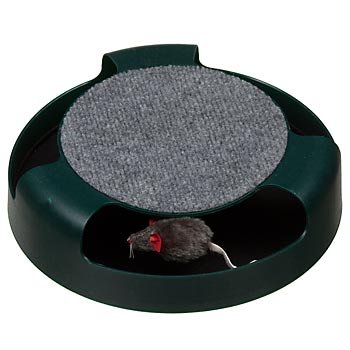 | 33 of 33 people found the following review helpful By Jeniee Greene (Canada, USA) - See all my reviews This review is from: Cat 'N' Mouse Cat Powered Cat Toy (Misc.) My cat has had this since he was about 3 months old, he's almost 3 years old now. He's loved it from the day we bought it for him. Somehow it keeps them so entertained, watching the mouse spin around. He loves to pounce on it and punch the mouse so much the fur has nearly worn off the entire mouse!We once took in a stray kitten before he was adopted, and he too loved this toy. He played with it all day and night! One of the best cat toys I have purchased! 25 of 25 people found the following review helpful By Dark Helmet (Seattle, WA) - See all my reviews This review is from: Cat 'N' Mouse Cat Powered Cat Toy (Misc.) This toy consists of a 'floating' hard plastic mouse covered with fake fur mounted on a raised plastic swing arm attached to the base in the middle. There seems to be some kind of ball bearing system at work, because the mouse swings freely at the lightest tap. At the same time it's sturdy, since the mouse is hard the cat can't really get his claws into it to get good leverage to try and pull it off the arm. Another good point is that unlike some toys, it doesn't make much noise, so if your cat decides to play with it all night, it won't keep you up. The only thing I would change is possibly making the base a little heavier, since it tends to get pushed around a bit.My kitten likes to lie on the floor and stick his arms through the holes to get the mouse. Even if the mouse is completely on the other side, odds are his flailing will bump the swing arm and bring it around. He plays with this thing for hours. There is a scratch pad on the top, but I've never seen... Read more 21 of 22 people found the following review helpful By This review is from: Cat 'N' Mouse Cat Powered Cat Toy (Misc.) Our kitty does not play with this all the time, but if we throw it out in the middle of the floor, he will swat at it for a few minutes. It's an enjoyable diversion for him, swatting and playing. He's not obsessed, but we're not sad we bought this. It's a worth addition to our cat-entertainment arsenal. |