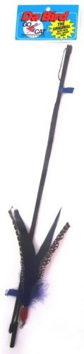 | 11 of 11 people found the following review helpful Amazon Verified Purchase This review is from: Da Bird Original Single 36" Pole Cat & Kitten Toy in Retail Package (Misc.) I'm writing a review because I bought this a month ago, and our cat has gone absolutely bonkers for it. So bonkers, in fact, that he broke the string twice, and one day we came home and the birdie was there, the stick was there with about 3 inches of string left, and all the rest of the string was missing. It's been two weeks since that and he's still fine so I'm not sure what he did with it but it appears that he didn't eat it, at least.We have had plenty of wand toys for our cat and I've never seen him go as crazy for a toy as he did for this one. The birdie spirals in the air sort of like a fishing lure in the water, and he just has a ball. For the price it doesn't bother me too much that it only lasted a month (and now he's even removed all the feathers!) so I am going to order another, but this time we will definitely only let him play with it when supervised, and won't leave it out when we leave the house. Overall, probably the best toy he's ever had... Read more 7 of 7 people found the following review helpful By Amazon Verified Purchase This review is from: Da Bird Original Single 36" Pole Cat & Kitten Toy in Retail Package (Misc.) This simple little thing drives my cat crazy! She loves it. Our dog does, too, but I'm scared he'll tear it up if I try to play with him with it. A gentle dip with the stick and pull up, and this thing flaps, and makes a flapping sound. It's very easy to make it soar horizontally, fly in a circle, glide up vertically and dive. It moves and sounds like a real bird. It's also almost hypnotic to fly it around. Might even appeal to non-pet owners as a tool for relaxation :)I think it's the most fun of any toy she has. As for critics who say it would be easy to build one, I disagree. The down side is, it's very fragile. I have to be careful to relax the string and take it gently from Anya when she catches it. However, despite many catches and a broken feather, it still works! 6 of 6 people found the following review helpful By This review is from: Da Bird Original Single 36" Pole Cat & Kitten Toy in Retail Package (Misc.) What a great cat toy. This is the one cat toy that is guaranteed to actually get played with. How many toys have you bought over they years that just sit around and never get even a swat? Well, that won't happen with Da-Bird! I have given tons of these to friends for their cats, and have only known one very elderly lady kitty to not be interested in it. But even the fattest, laziest cats I've known will motivate for this toy. You will get some amazing leaps out of your cats. The sound the feathers make when they go through the air, as well as how the birdie "flutters" apparently just can't be resisted. And yes, there are many other feather toys on the market at the stores, but none of those other brands have ever gotten my cats to do a 5 foot twisting leap into the air. My cats will go for this until they are panting. Some of them like to try to walk with it in their mouths to another room to spend more time with their "Catch." We use it every day for 20-30 minutes. The... Read more |